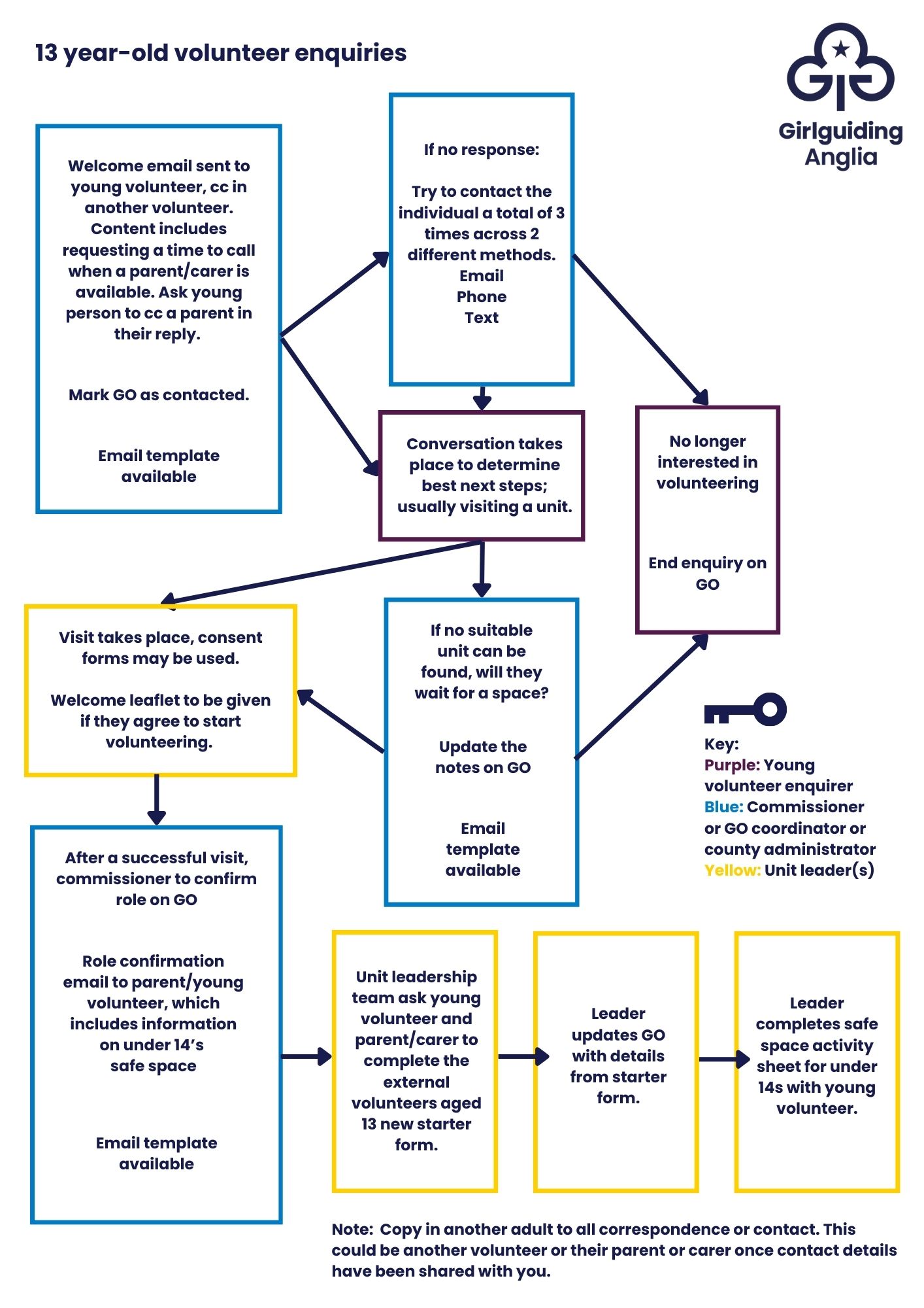 13 year old volunteer enquiries flowchart
